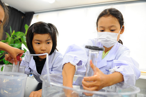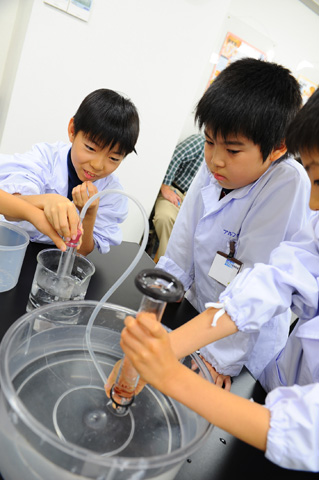 メスシリンダーにボコボコと空気が入っていき、